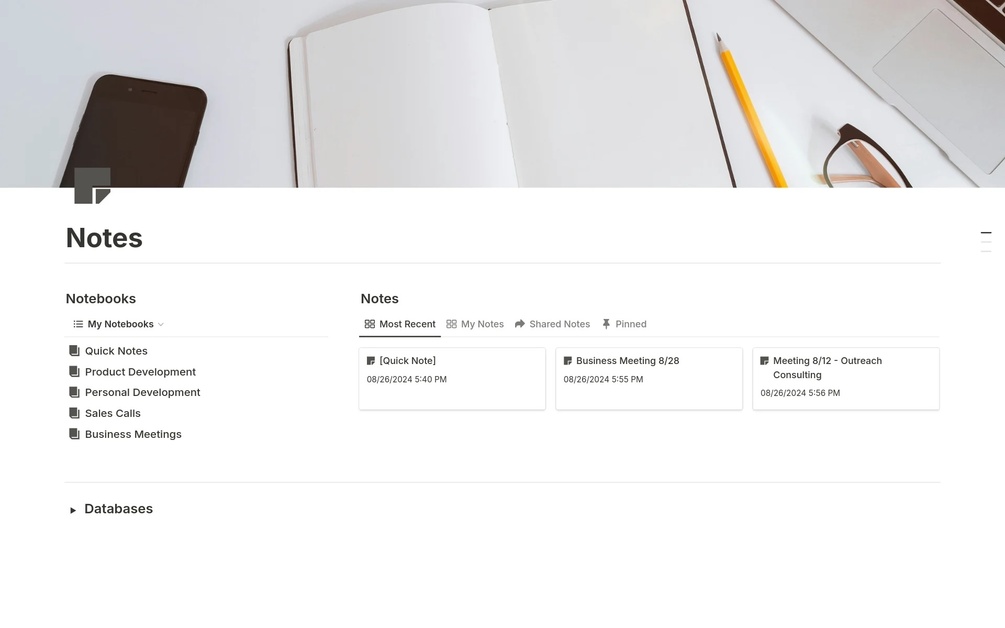 2. Organized Notebooks: Keep your notes tidy and structured within customizable Notebooks.